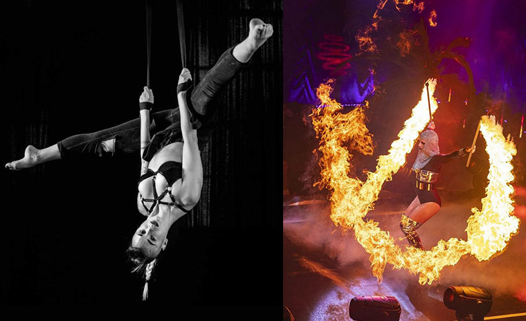 While I was working as a dancer in Greece, I met my first aerialists. I was fascinated by what they were able to do and as I’m never short of energy and always up for a challenge, I decided to train with them. However there is a shortage of good aerial teachers back home, so as soon as I arrived in London I found some of the best aerialists worldwide to train me.